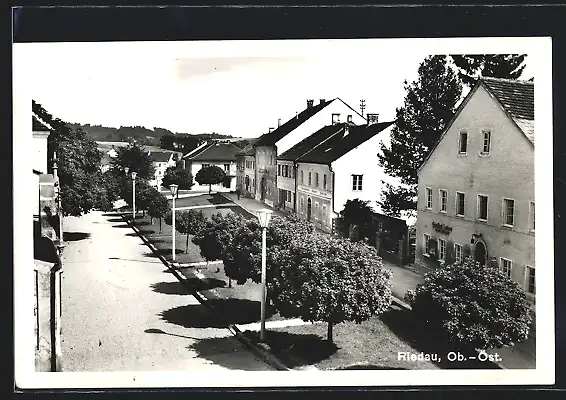 AK Riedau, Ortsansicht mit Strassenpartie