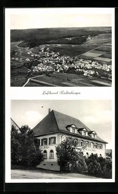 AK Riedöschingen, Totalansicht aus der Vogelschau mit Gasthaus zum Adler