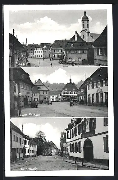 AK Riegel, Partie beim Rathaus, Blick in die Hauptstrasse