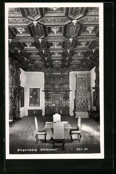 AK Riegersburg, Tisch mit Stühlen im Rittersaal