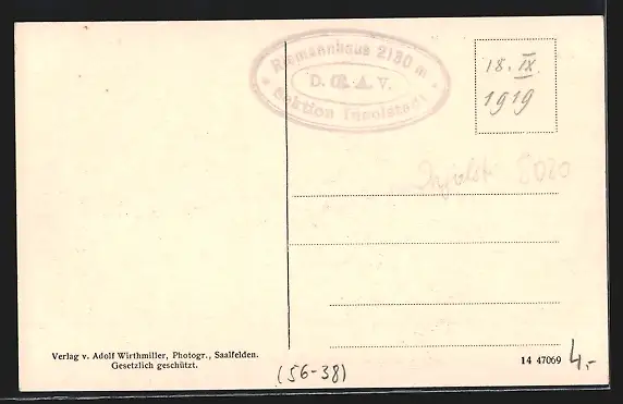 AK Riemannhaus am steinernen Meer gegen Breithorn