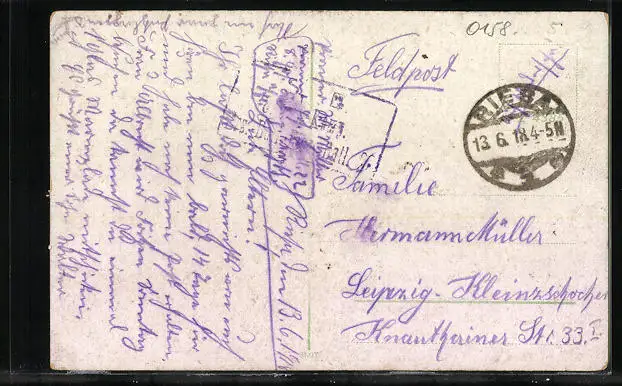 alte Ansichtskarte, gelaufen 1918 als Feldpost, guter Zustand