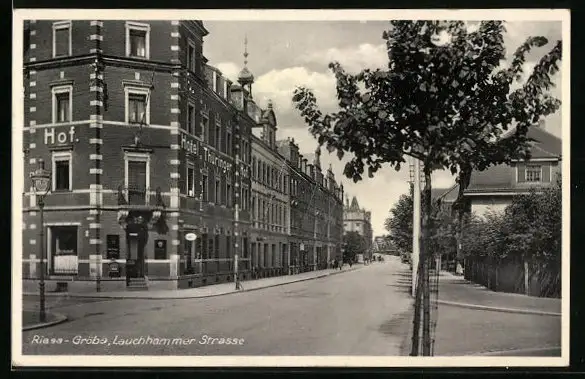 AK Riesa-Gröba, Lauchhammer Strasse mit Gasthaus Thüringer Hof