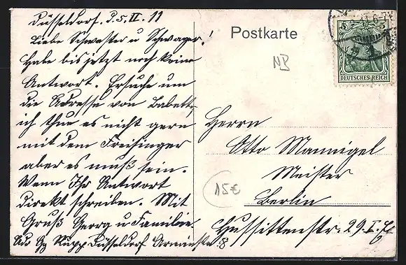 alte Ansichtskarte, gelaufen 1911, Stempelspur, Eckknick li. unten, Abriebspur re. unten, guter Zustand