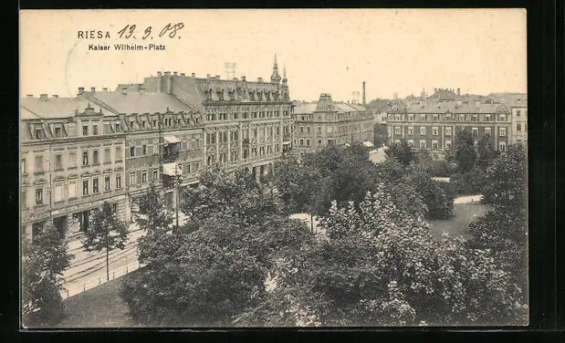 AK Riesa, Kaiser Wilhelm-Platz aus der Vogelschau