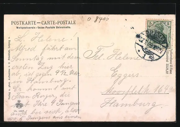 alte Ansichtskarte, gelaufen 1909, Stempelspur, guter Zustand