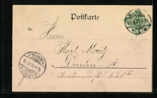 alte Ansichtskarte, gelaufen 1900, guter Zustand