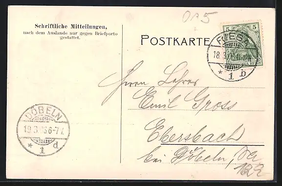 alte Ansichtskarte, gelaufen 1906, guter Zustand