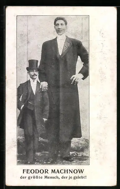 AK Riese Feodor Machnow neben einem Normalwüchsigen