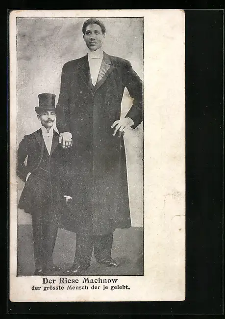 AK Riese Machnow neben durchschnittlich grossen Mann