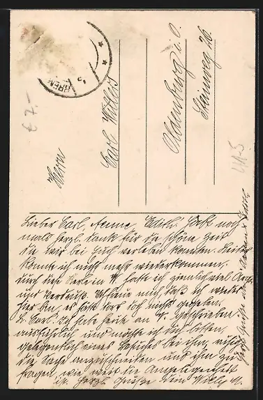alte Ansichtskarte, gelaufen, Briefmarke entfernt, guter Zustand