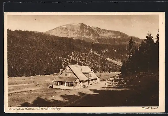 AK Riesengebirge, Riesengrundbaude mit dem Brunnberg