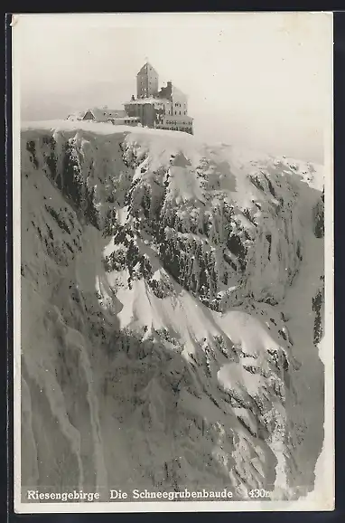 AK Riesengebirge, Schneegruben-Baude im Winter