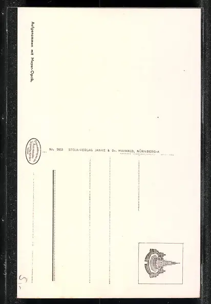 Personenbezogene Daten auf der Rückseite der Karte wurden durch blauen Textmarker unkenntlich gemacht. Die blauen Stellen sind auf die Vorderseite durchgeweicht und wirken sich negativ auf das Postkartenfoto aus