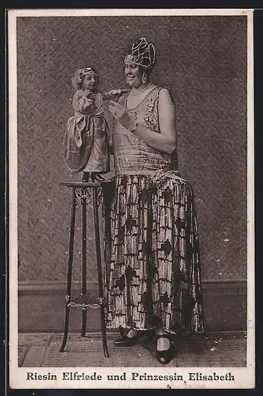 AK Riesin Elfriede und Prinzessin Elisabeth, Liliputaner