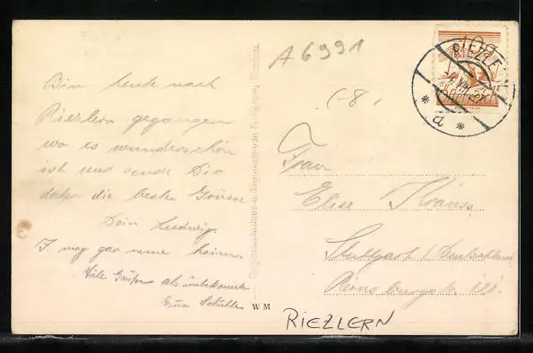 AK Riezlern, Panorama mit Kirche und Widderstein