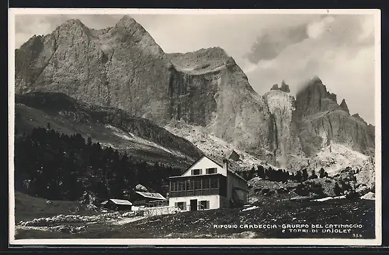 AK Rifugio Cardeccia, Berghütte vor Gipfelpanorama