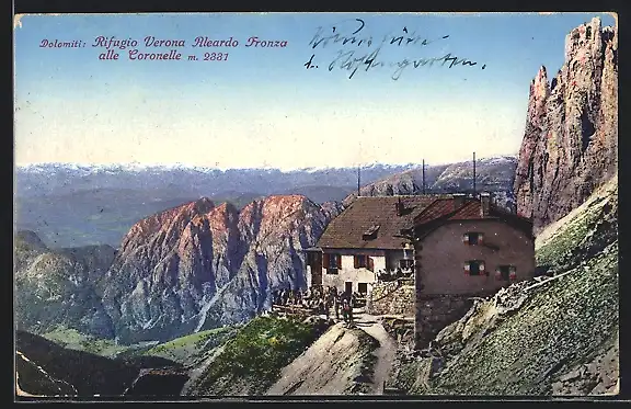 AK Rifugio Verona Aleardo Fronza, Bergsteiger an der Berghütte