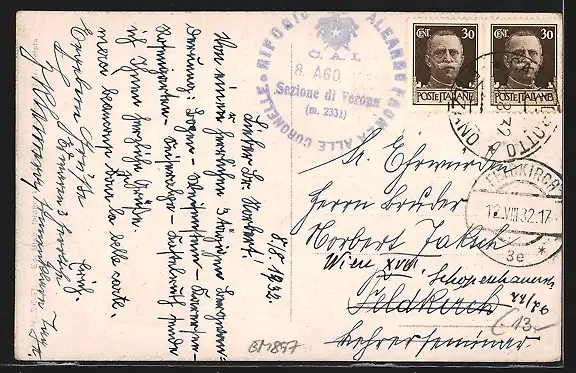 gelaufen 1932, Eckknick unten li., guter Zustand