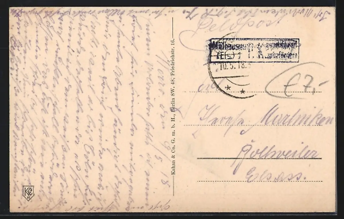 alte Ansichtskarte, gelaufen 1918, guter Zustand