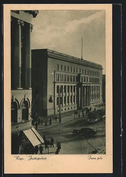 AK Riga, Auto- und Strassenbahnverkehr am Justizpalast