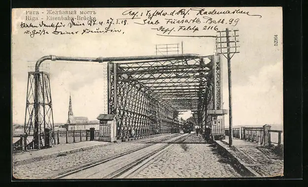 AK Riga, Blick über die Eisenbahnbrücke