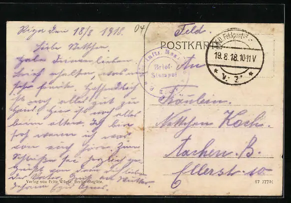 alte Ansichtskarte, gelaufen 1918, guter Zustand