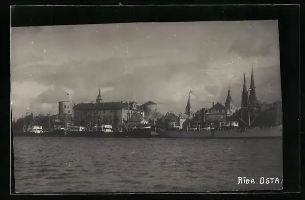 AK Riga, Teilansicht mit Schiffen im Hafen