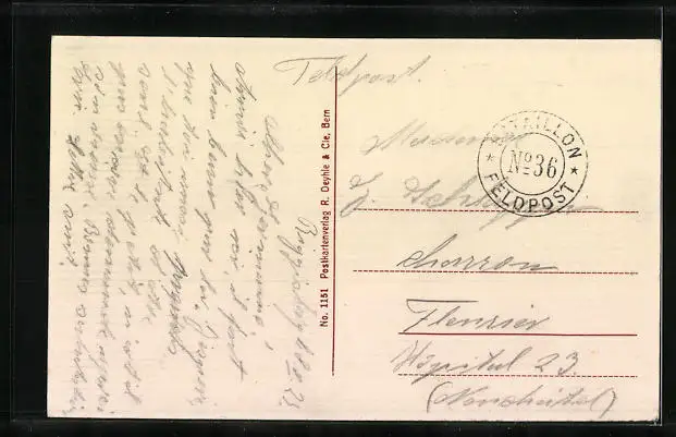 alte Ansichtskarte, gelaufen 1925 als Feldpost, Bugspur oben mittig, guter Zustand