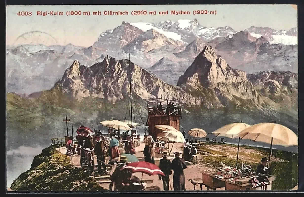 AK Rigi-Kulm, Aussichtsplattform mit Glärnisch und Mythen im Panorama