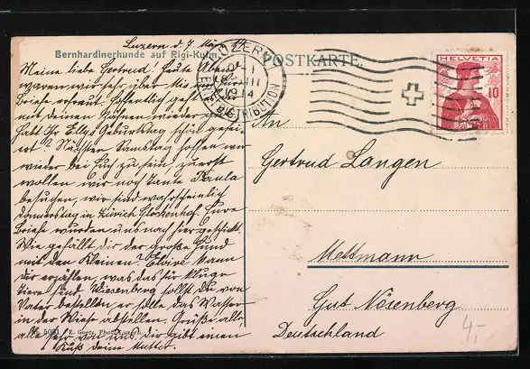 gelaufen 1914, Eckknick unten li., guter Zustand