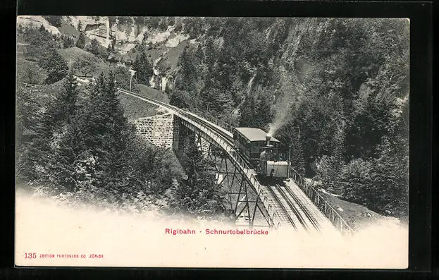 AK Rigibahn, Bergbahn passiert die Schnurtobelbrücke