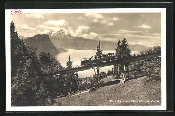 AK Rigibahn Schnurtobelbrücke und Pilatus