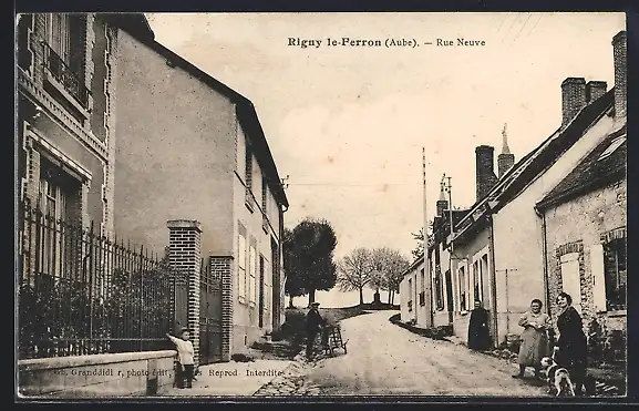 AK Rigny-le-Ferron, Rue Neuve avec habitants et chien devant les maisons
