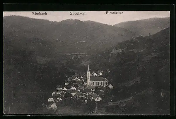 AK Rimbach, Teilansicht mit Kirche, Sudelkopf und Firstacker