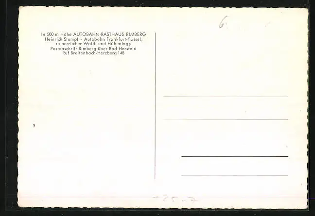 AK Rimberg über Bad Hersfeld, Autobahn-Raststätte Rimberg Heinrich Stumpf