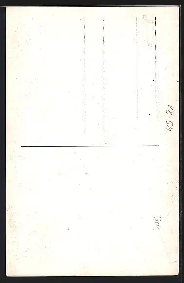 Personenbezogene Daten auf der Rückseite der Karte wurden durch blauen Textmarker unkenntlich gemacht. Die blauen Stellen sind auf die Vorderseite durchgeweicht und wirken sich negativ auf das Postkartenfoto aus