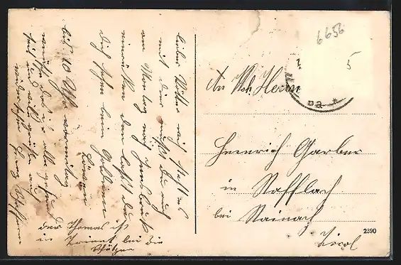 alte Ansichtskarte, gelaufen, Briefmarke entfernt, guter Zustand