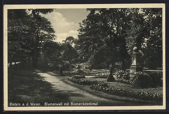 AK Rinteln a. d. Weser, Blumenwall mit Bismarckdenkmal