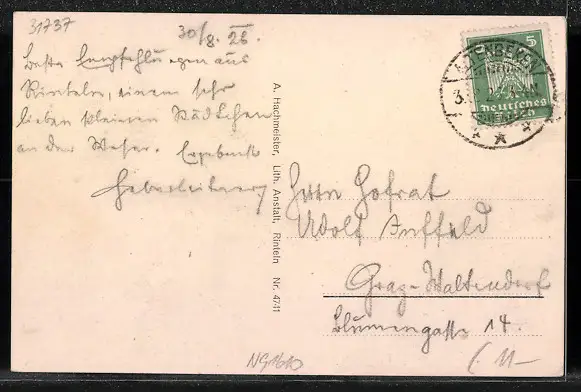 alte Ansichtskarte, gelaufen 1926, Stempelspur, guter Zustand