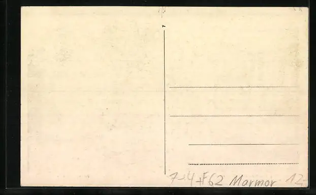 Personenbezogene Daten auf der Rückseite der Karte wurden durch blauen Textmarker unkenntlich gemacht. Die blauen Stellen sind auf die Vorderseite durchgeweicht und wirken sich negativ auf das Postkartenfoto aus