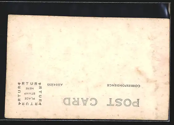 Personenbezogene Daten auf der Rückseite der Karte wurden durch blauen Textmarker unkenntlich gemacht. Die blauen Stellen sind auf die Vorderseite durchgeweicht und wirken sich negativ auf das Postkartenfoto aus