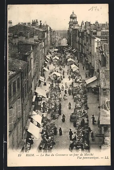 AK Riom, La Rue du Commerce un jour de Marché