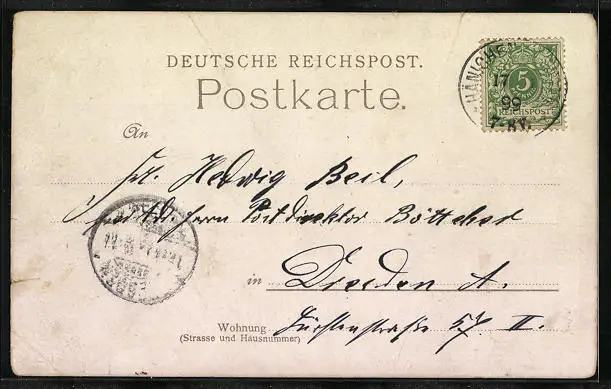 alte Ansichtskarte, gelaufen 1899, Bugspuren mittig, guter Zustand