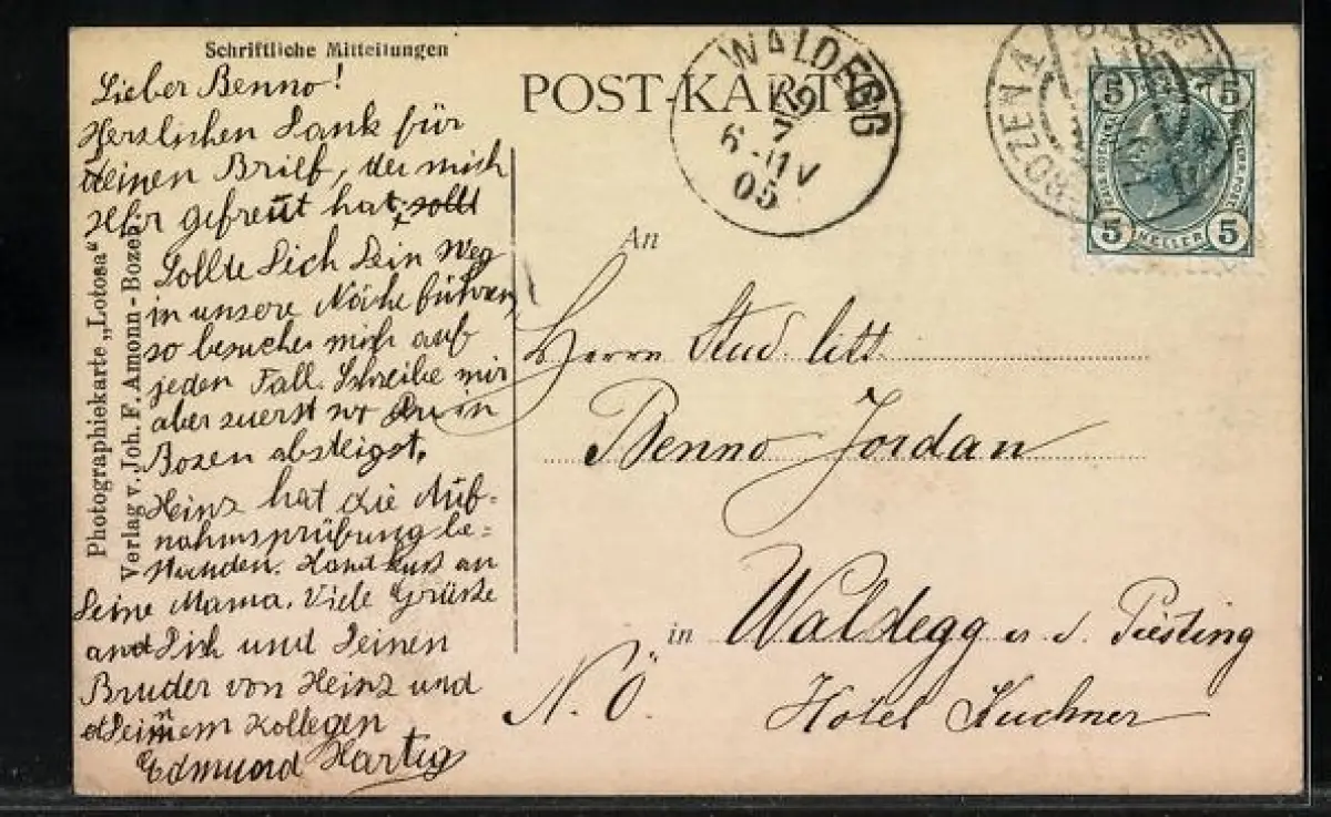 alte Ansichtskarte, gelaufen 1905, guter Zustand
