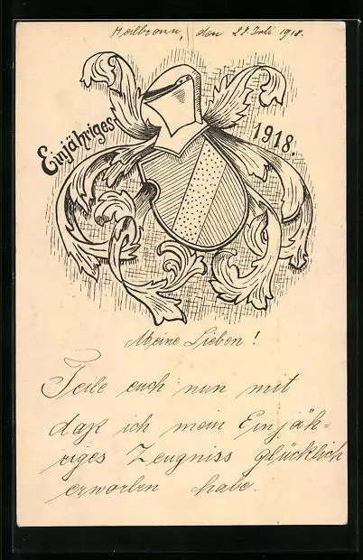 AK Ritterhelm und Studentenwappen, Einjähriges 1918