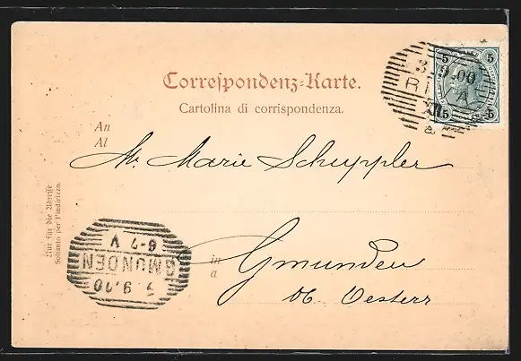 alte Ansichtskarte, gelaufen 1900, guter Zustand