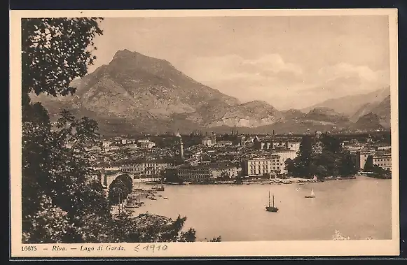 AK Riva, Lago di Garda, Panorama mit Kirche, Segelschiff