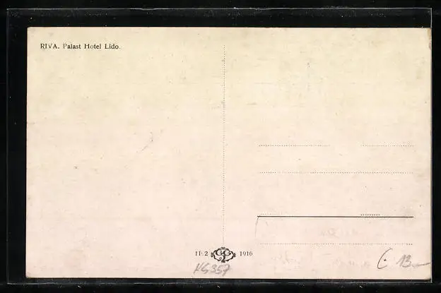 Personenbezogene Daten auf der Rückseite der Karte wurden durch blauen Textmarker unkenntlich gemacht. Die blauen Stellen sind auf die Vorderseite durchgeweicht und wirken sich negativ auf das Postkartenfoto aus