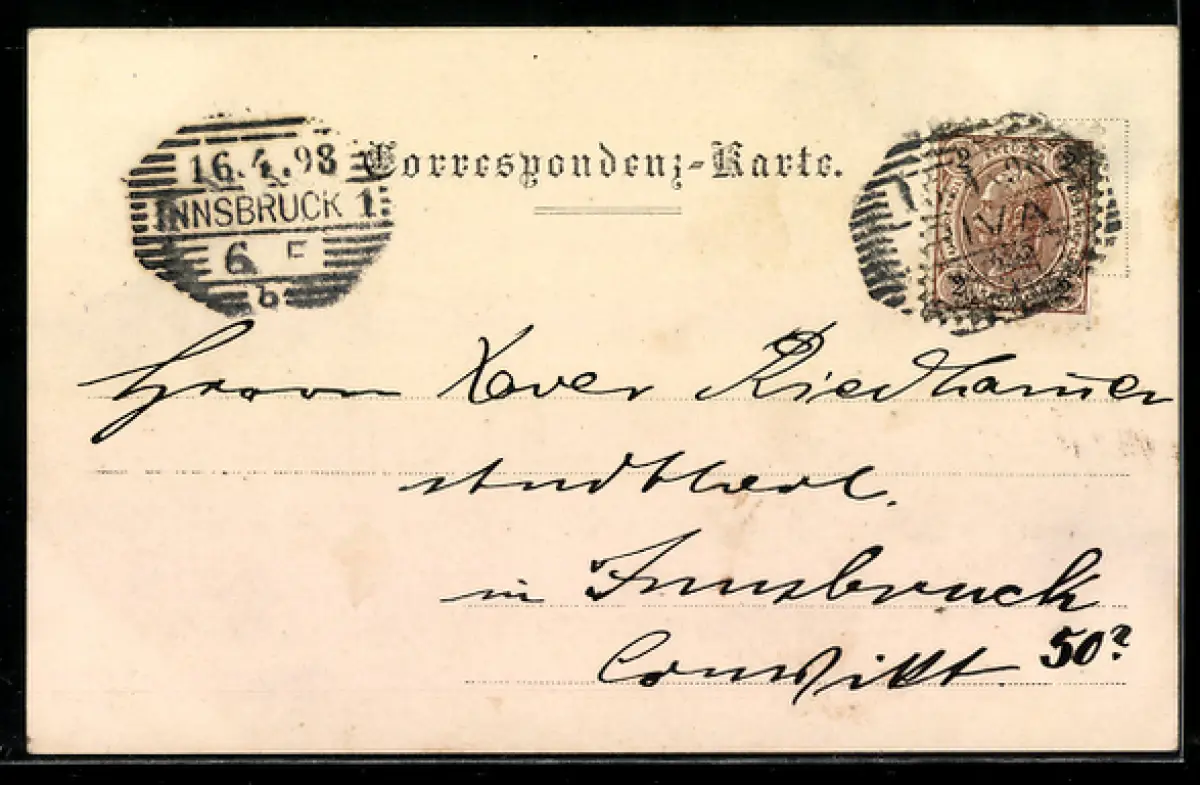alte Ansichtskarte, gelaufen 1898, guter Zustand